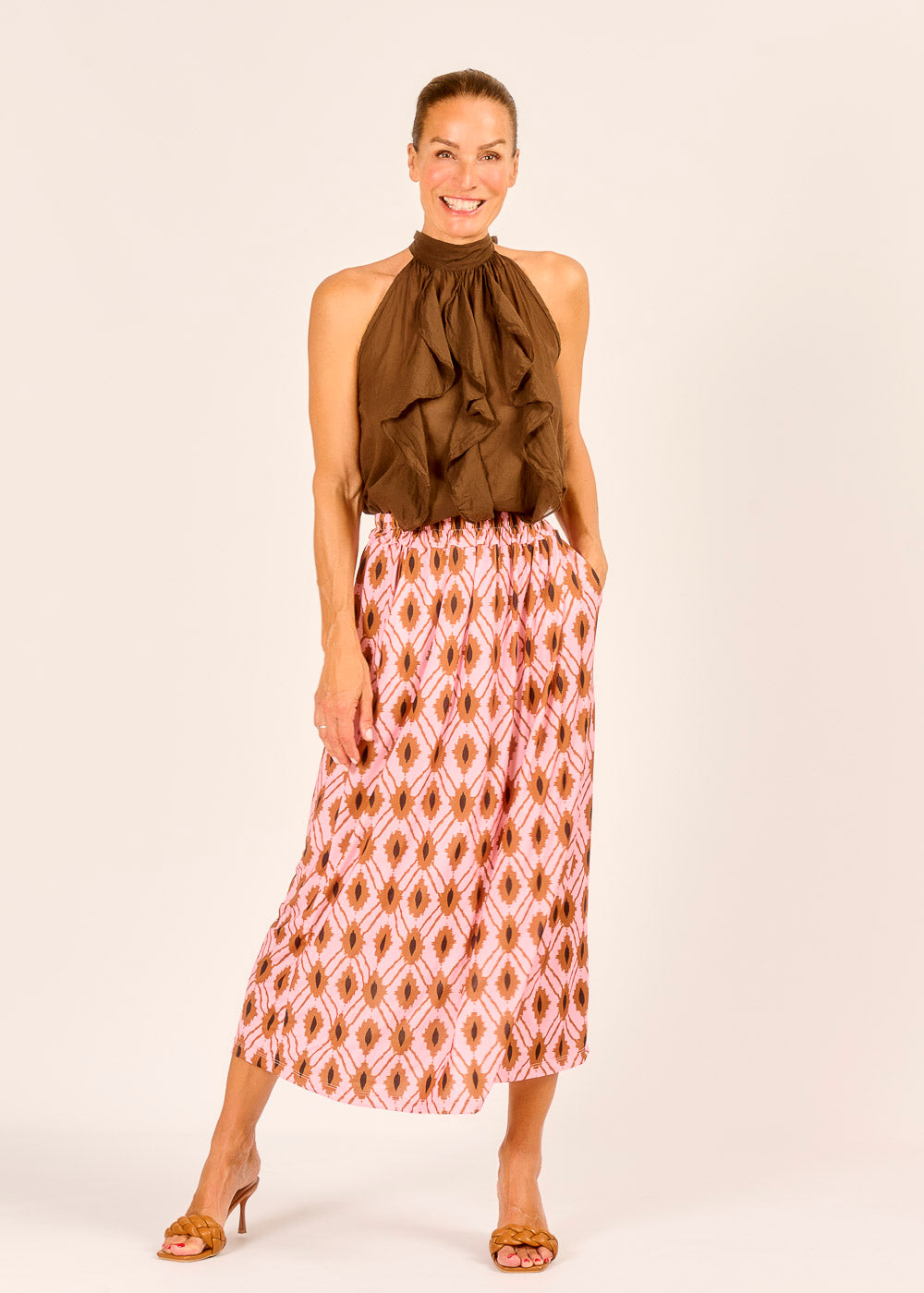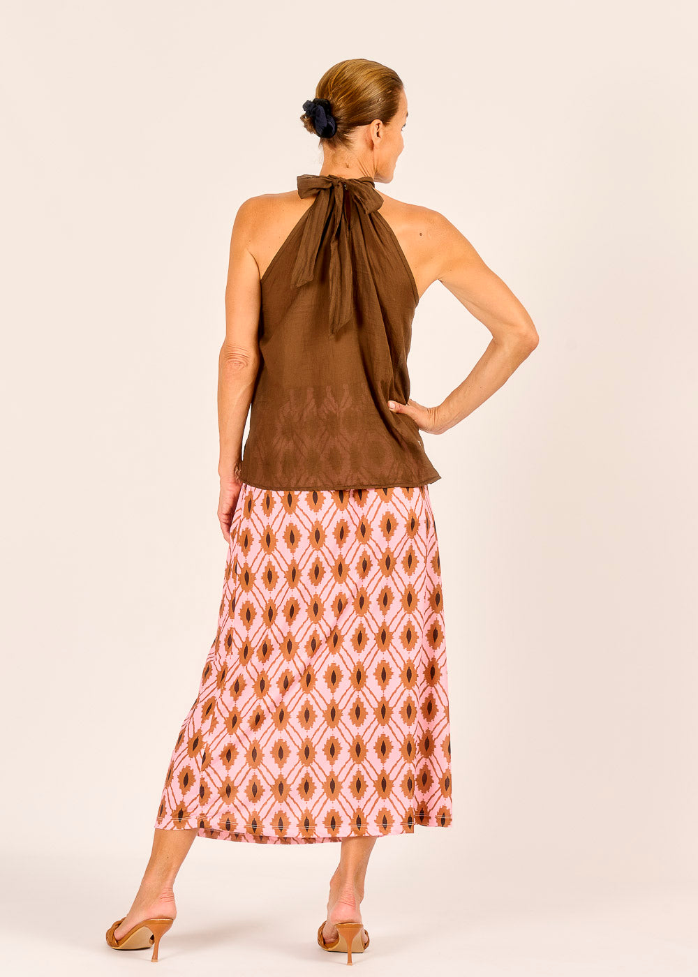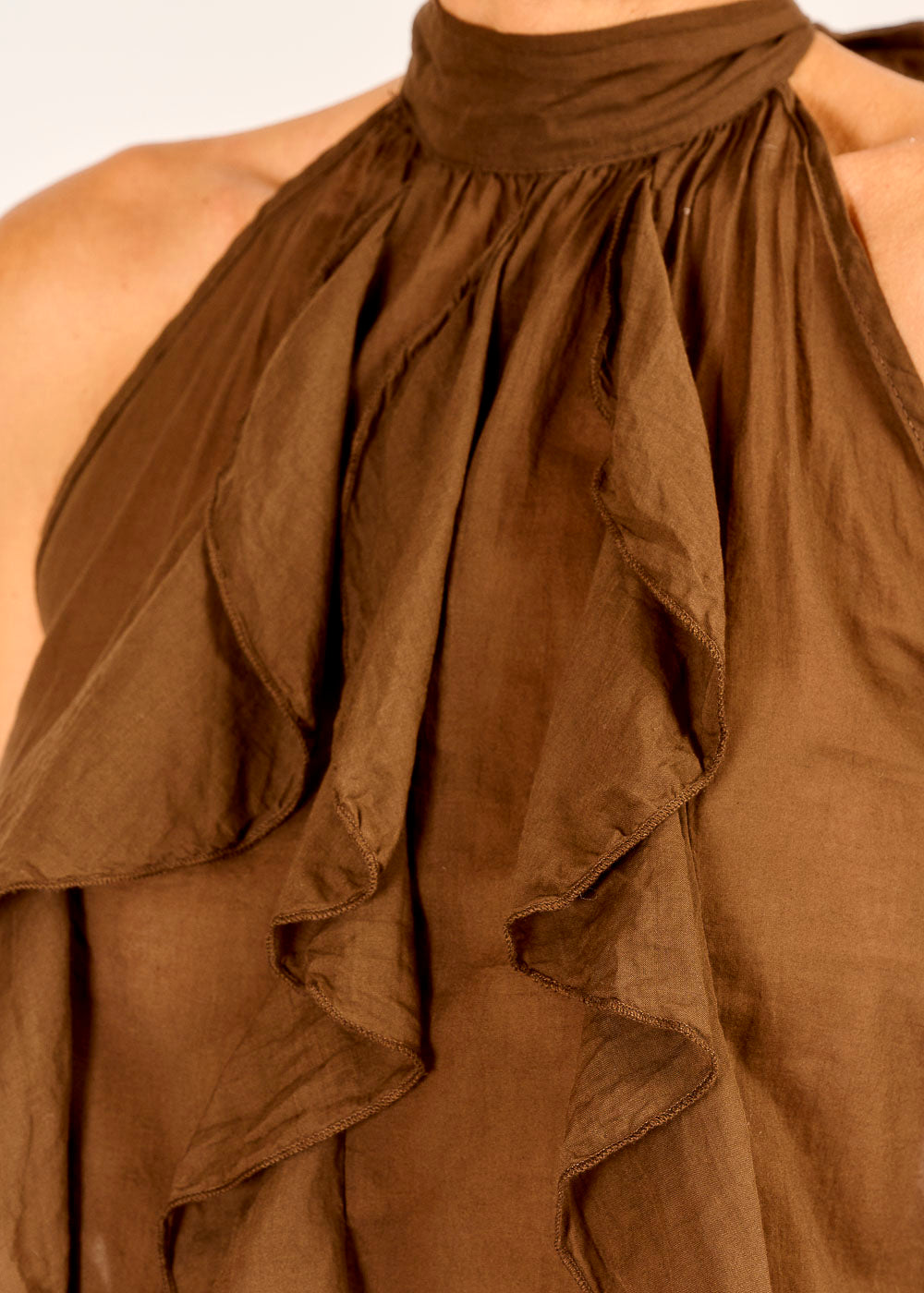 Diese elegante Neckholderbluse in der erdigen Farbe Moka ist ein wahrer Blickfang, der feminine Raffinesse ausstrahlt. Die zarten Volants am Ausschnitt verleihen dem Design eine verspielte Leichtigkeit und unterstreichen Ihre stilvolle Ausstrahlung. Ob zum schicken Rock oder einer lässigen Hose kombiniert, diese Bluse ist die perfekte Wahl für besondere Anlässe und setzt Ihre Garderobe gekonnt in Szene.