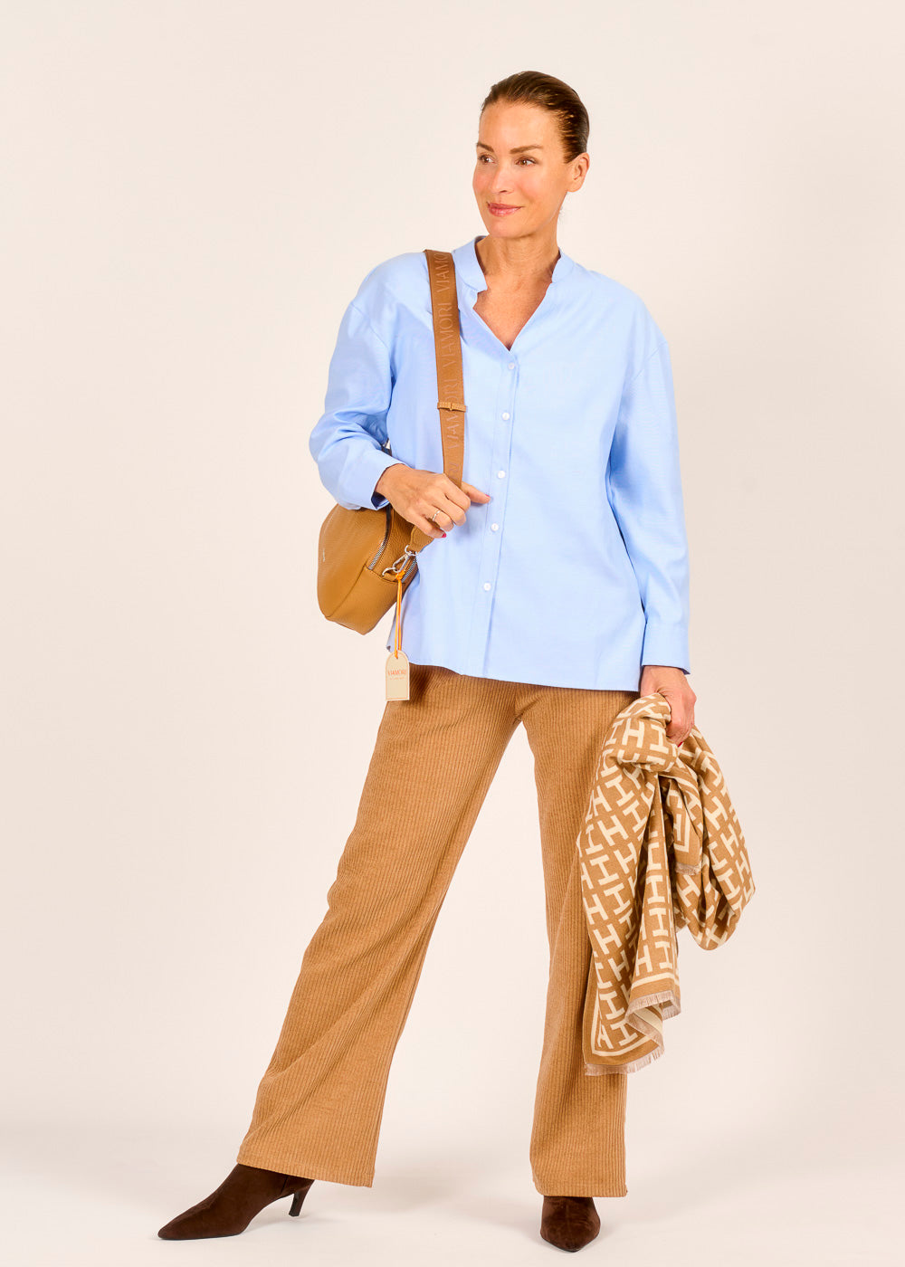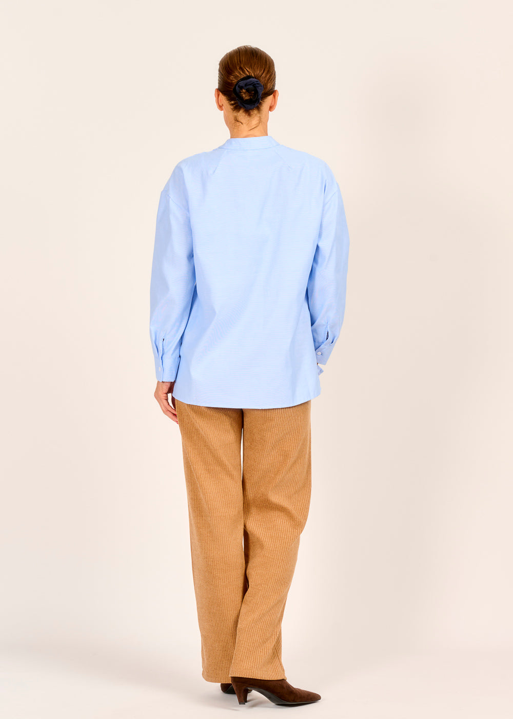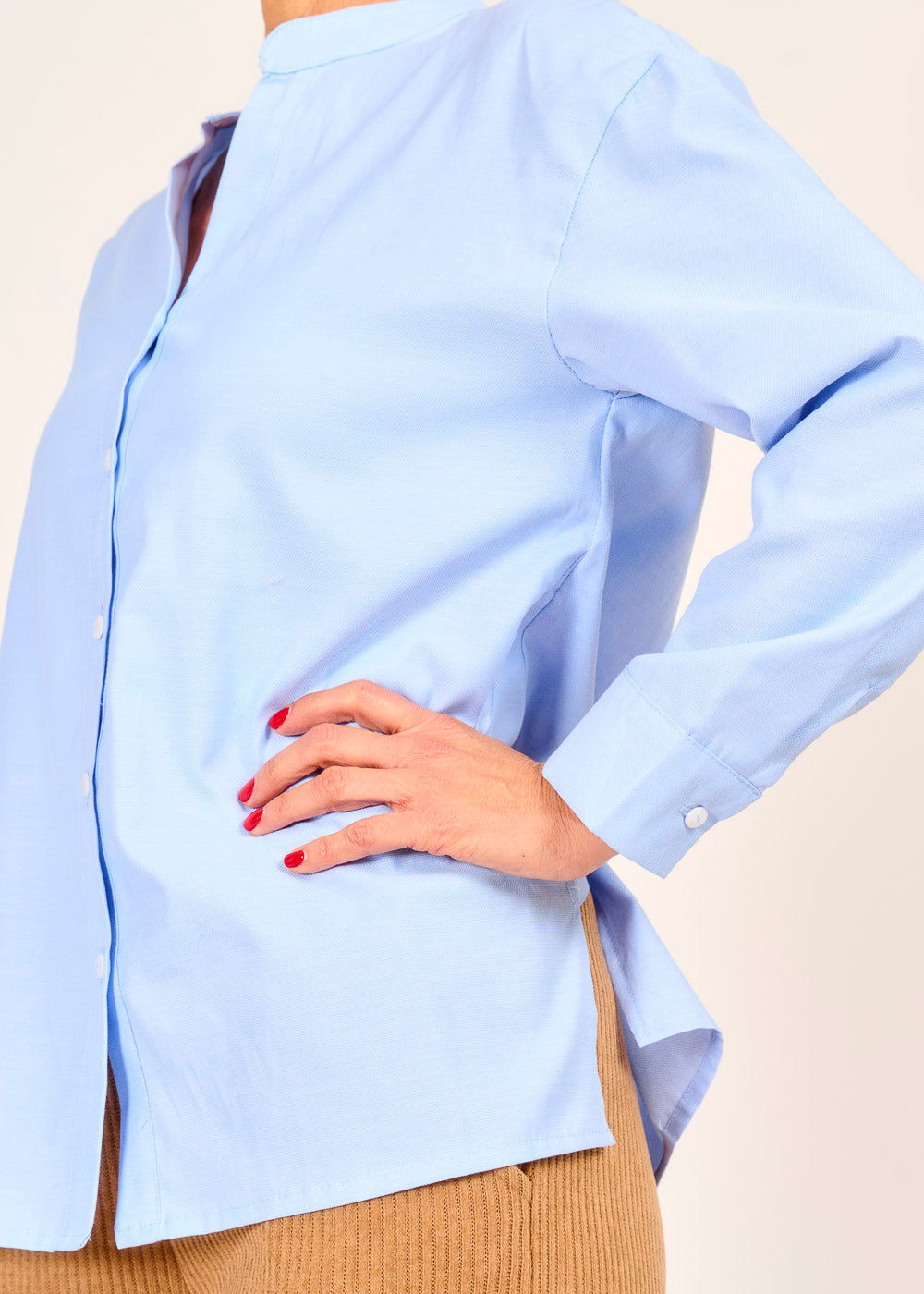 Frische deinen Kleiderschrank auf mit dieser lässigen Bluse in hellem Himmelblau. Der lockere, leicht verlängerte Schnitt umspielt die Figur und bietet maximalen Tragekomfort. Der dezente Stehkragen und die verdeckte Knopfleiste verleihen dem cleanen Design einen modernen und edlen Touch.
