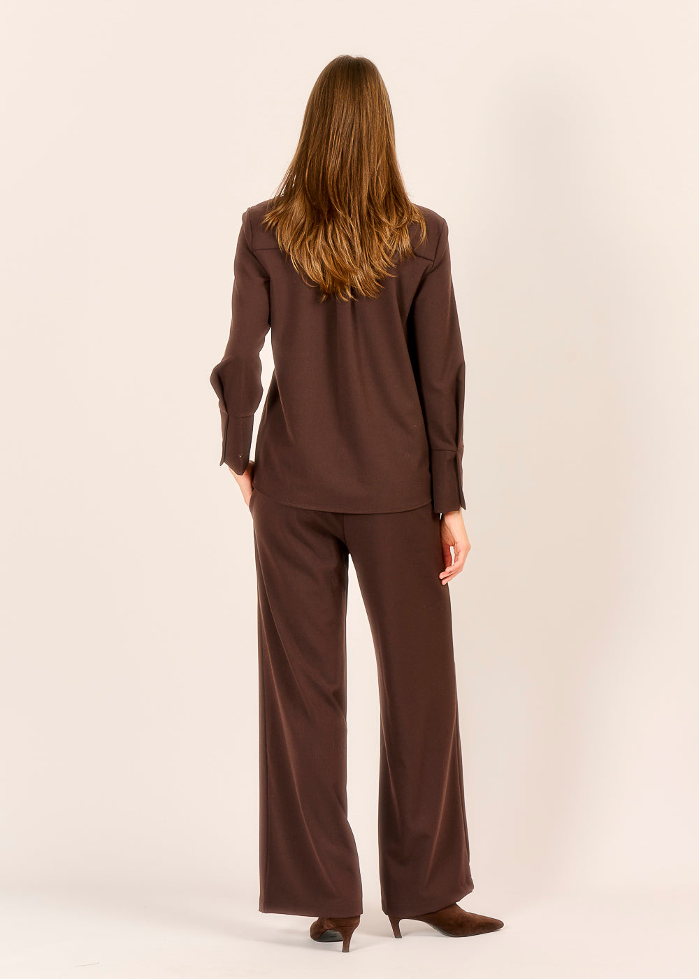 Diese luxuriöse edle Pantalone in der Trendfarbe Mokka ist das stilvolle Must-have für die kommende Saison. Mit über 30% Viskoseanteil und einer leichten Woll-Optik bietet sie einen eleganten Fall und hält Sie zugleich wunderbar warm. Der weite Schnitt und das warme Braun machen sie zum perfekten Begleiter für schicke Winter-Looks, die Komfort und Klasse mühelos vereinen.