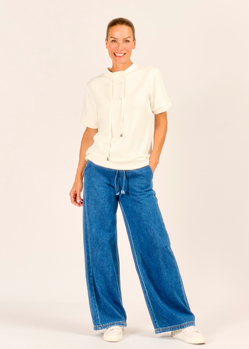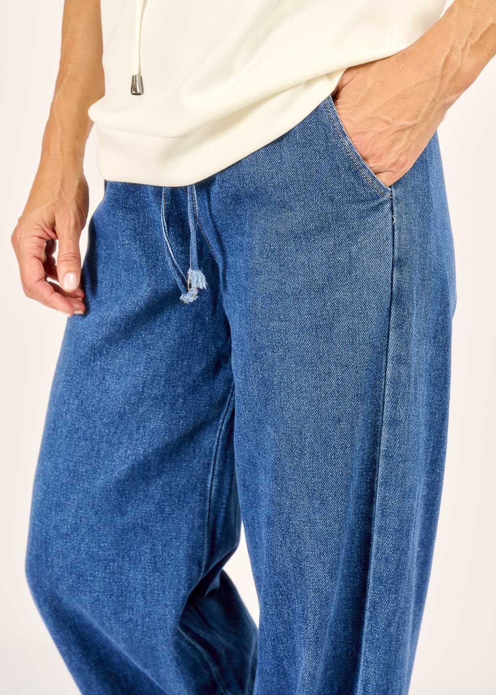 Entdecken Sie den ultimativen Komfort und lässigen Chic mit unserer neuen Jeans im Tunnelzug-Design – perfekt für entspannte Tage. Der weite Schnitt und der flexible Bund garantieren eine bequeme Passform und unbegrenzte Bewegungsfreiheit, ohne dabei auf Stil zu verzichten. Kombinieren Sie sie mit Sneakers und einem schlichten Oberteil für einen mühelosen Alltags-Look, der dennoch absolut im Trend liegt.