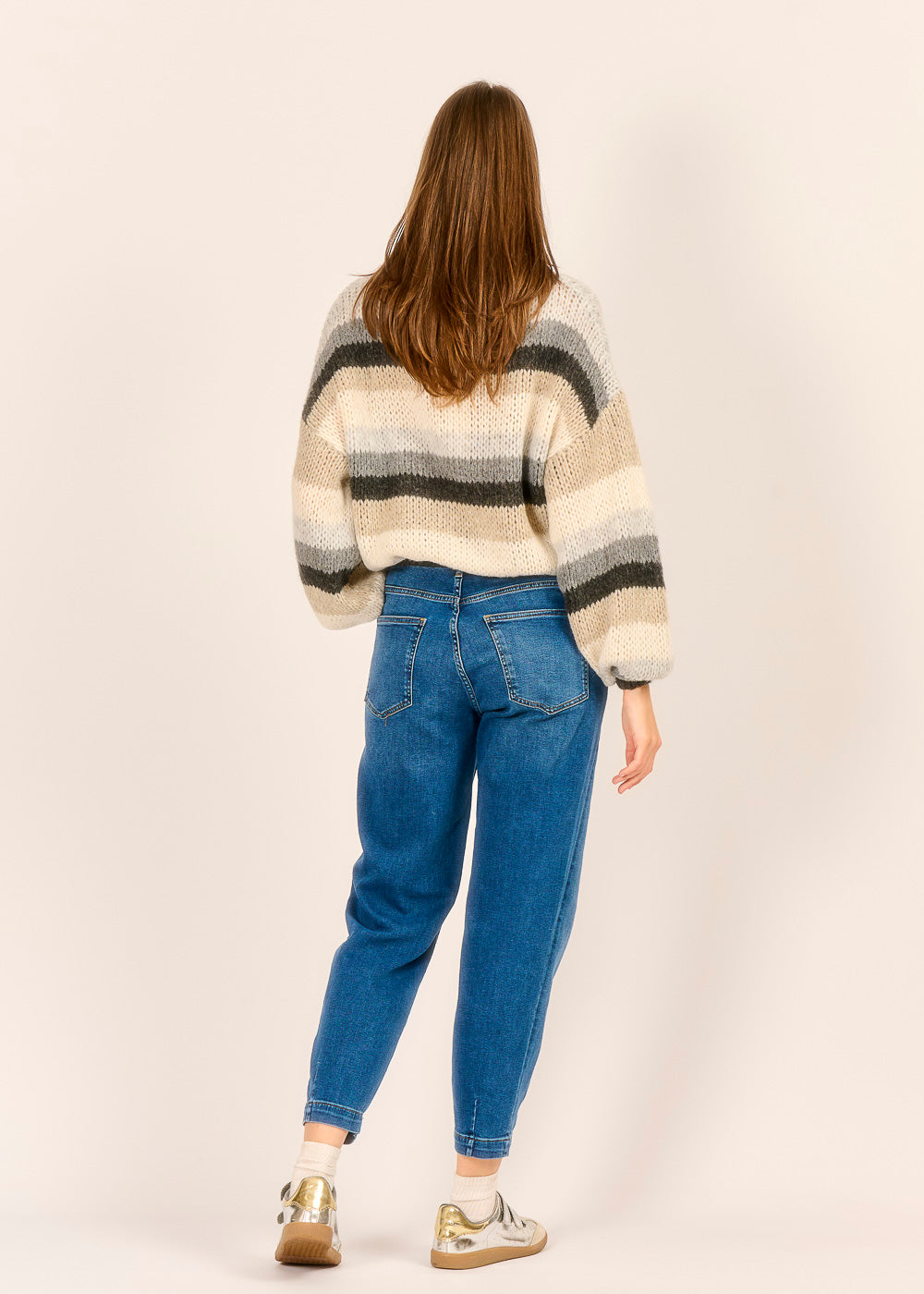 Diese moderne Slouchy Jeans in mittlerer Blau-Waschung definiert Komfort und Coolness neu und ist ein Muss für jeden entspannten Look. Sie ist bewusst etwas höher geschnitten und bietet durch ihre lockere, entspannte Passform ein unglaublich bequemes Tragegefühl, ohne dabei auf Style zu verzichten. Perfekt für den lässigen Alltags-Chic – kombinieren Sie sie mit Strick oder einer eleganten Bluse, um Ihre entspannte Silhouette zu betonen.
