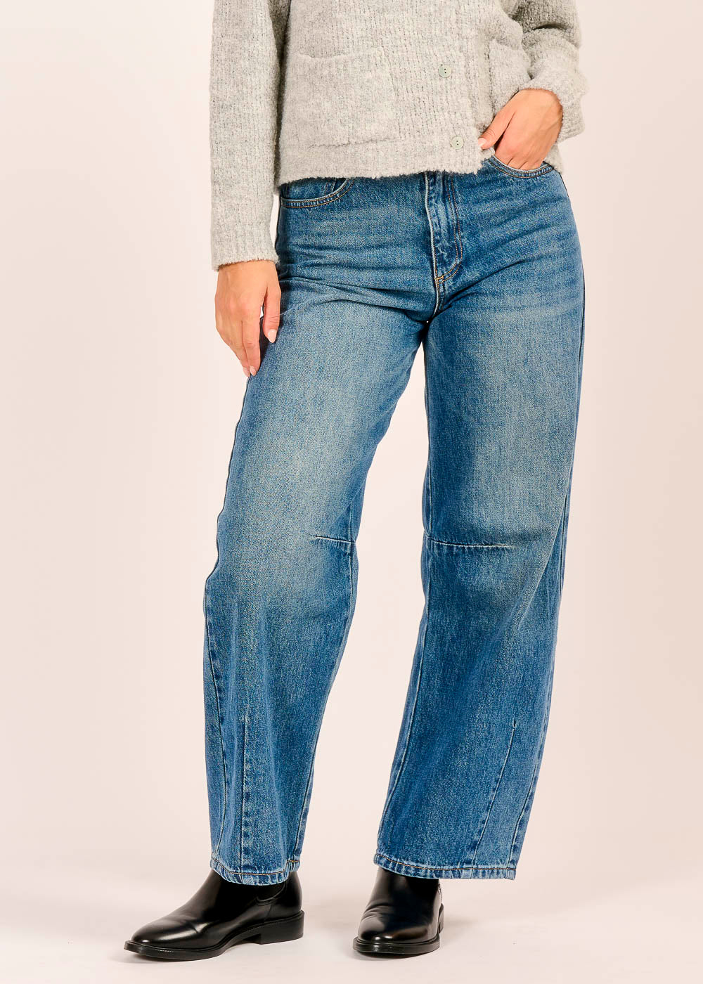Die lässige Ballon Jeans sorgt nicht nur eine moderne Silhouette, sondern schenkt dir Bewegungsfreiheit. Der klassische Blauton lässt sich mühelos zu allen deinen Lieblingsstücken kombinieren.
