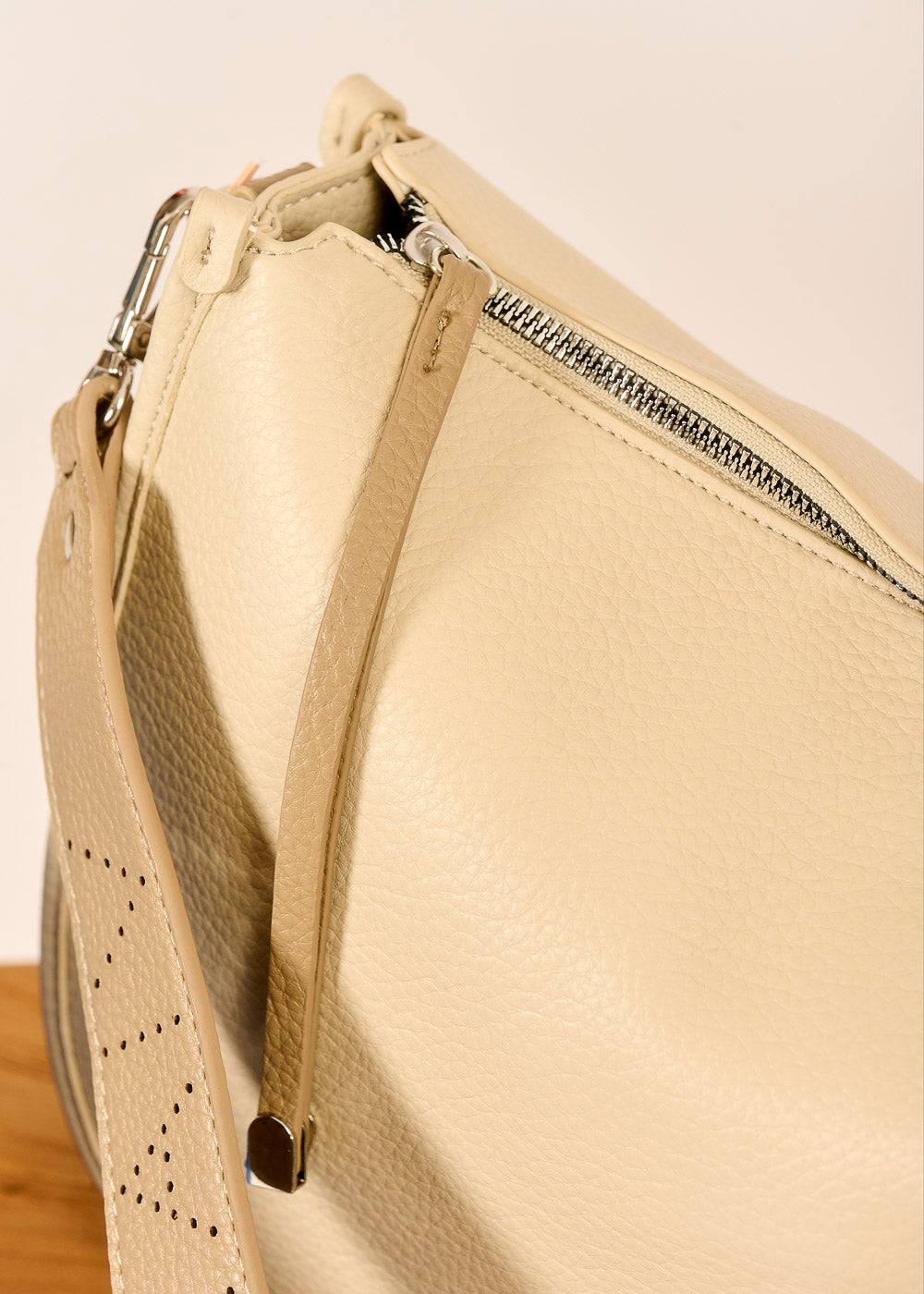 Die beige Umhängetasche von VIAMORI setzt stilvolle Akzente zu jedem Outfit. Mit ihrer abgerundeten Form und dem charmanten Logo-Detail vereint sie italienische Raffinesse und praktische Alltagstauglichkeit.